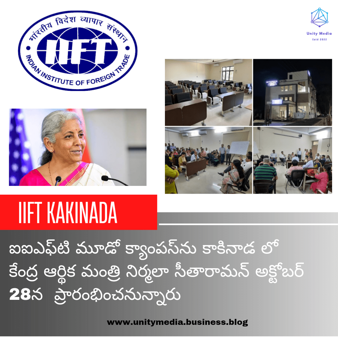 ఐఐఎఫ్టి మూడో క్యాంపస్ను కాకినాడ లో కేంద్ర ఆర్థిక మంత్రి నిర్మలా సీతారామన్ అక్టోబర్ 28న ప్రారంభించనున్నారు